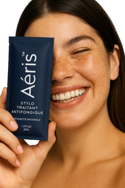 Aéris™ allie puissance antifongique, actifs naturels et application propre. Pour des pieds nets, sains et sans complexe.